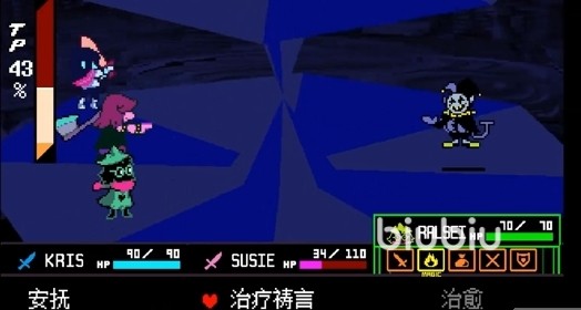 如果选择暴力击败Jevil,建议让Kris使用吓人的剑,Susie则是勇气之斧,Ralsei需要劈巾。在第二回合使用单足旋转降低Jevil的防御力,随后集中火力进行攻击。Susie的粗暴碎击是一个强力的输出技能,合理使用可以在短时间内对Jevil造成大量伤害。在回血时,可以让Kris和Susie继续进攻,而Ralsei则负责使用道具进行治疗。如果操作得当,可以在战斗的第四阶段前将Jevil击败。