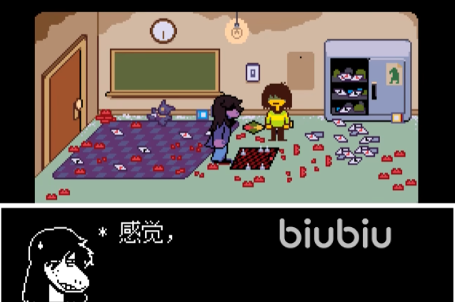 到这这个章节就结束了,但是第二章的开始明显节奏就变了,玩家操纵的kris好像有了自己的意识,开始反抗玩家的操控,比如说我们想看哥哥的日记时,它就会闭上眼睛,拒绝观看。