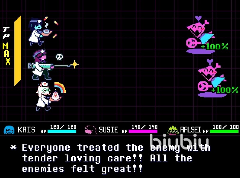 Kris的姓名可重组为“Risk”(风险),与Frisk形成镜像,暗示其作为“容器”的被动属性与主动冒险精神的矛盾。Kris在光世界的衣服色调与Chara相似,暗世界披肩颜色接近Frisk的衬衫,进一步强化其“混合体”身份。
