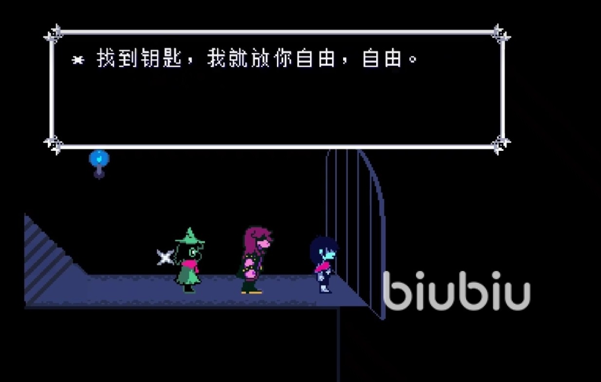 我们推进至城堡一层存档点,搭乘电梯前往“?????层”,进入牢房与神秘囚犯对话,对方要求玩家收集三枚钥匙碎片。碎片1:在城堡镇老猫店主处询问“钥匙”相关问题,获得第一枚碎片。碎片2:返回森林区域,从城堡存档点往回走,在四个舞者下方的隐藏通道内开启宝箱获取。碎片3:在平原场景中,根据城堡房间图案提示,输入密码开启宝箱。集齐碎片后,返回烘焙特卖存档点上方,委托铁匠修复钥匙,并修复被苏西破坏的蛋糕以获取额外道具,最终返回“?????层”牢房,用钥匙开启Boss战。