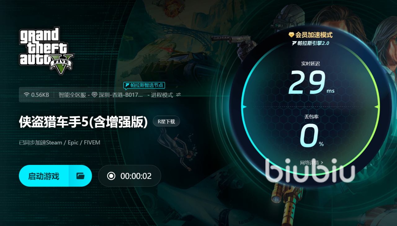 2025年05月05日 17:28 来源:暴走亦妙蛙花gta5闪退怎么办?如果你在游戏过程中遇到频繁闪退的问题,biubiu加速器可以为你提供完美的解决方案。通过biubiu加速器的智能网络优化,它能有效减少因网络不稳定而引发的闪退现象,让你在洛圣都的世界中畅游无阻。biubiu加速器不仅优化了你的连接,还能提高数据传输速度,确保游戏运行更加顺畅。特别是在多人模式中,biubiu加速器能够帮助你突破地区限制,避免因延迟问题导致的游戏崩溃和断线。无论你是在执行任务、参与赛车,还是进行激烈的对战,biubiu加速器都能确保你的游戏体验无闪退、无卡顿,完全沉浸在gta5的精彩世界里。