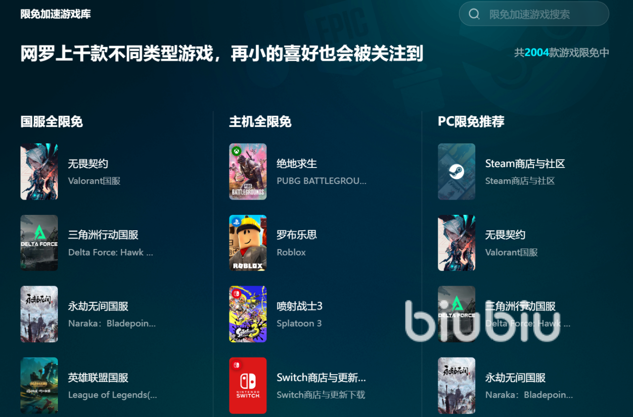 在覆盖面上,biubiu同样展现了强大的一面。无论是PC平台上的Steam、Epic,还是手机端的各类国服、国际服游戏,甚至部分主机游戏,biubiu都有对应的加速服务。同时,它还贴心地推出了限免专区,不定期放送海量免费加速的热门游戏,玩家不花一分钱就能享受到加速效果,尤其适合学生党或预算有限的玩家。此外,biubiu也会根据玩家的使用情况,实时优化节点分配,最大程度保障每一局游戏的网络稳定,让玩家专心享受游戏乐趣,而不是被网络问题烦扰。