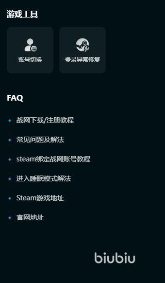 除了基本的加速服务,biubiu当中还添加了很多辅助功能,比如账号切换,对于经常切号玩的用户来说,有了这个服务后,就无需频繁地更换客户端,在biubiu里面就能完成账号登录,让你更快地进入游戏。还有登录异常修复功能,当你无法正常登号的时候,借助它就能将问题解决,此外,平台还汇总了许多常见问题的解决方案,当你遇到类似的状况时,使用对应的方法即可解决,要是在使用biubiu的过程中,遇到了影响使用的bug,也可以向官方反馈,之后平台就会修复。