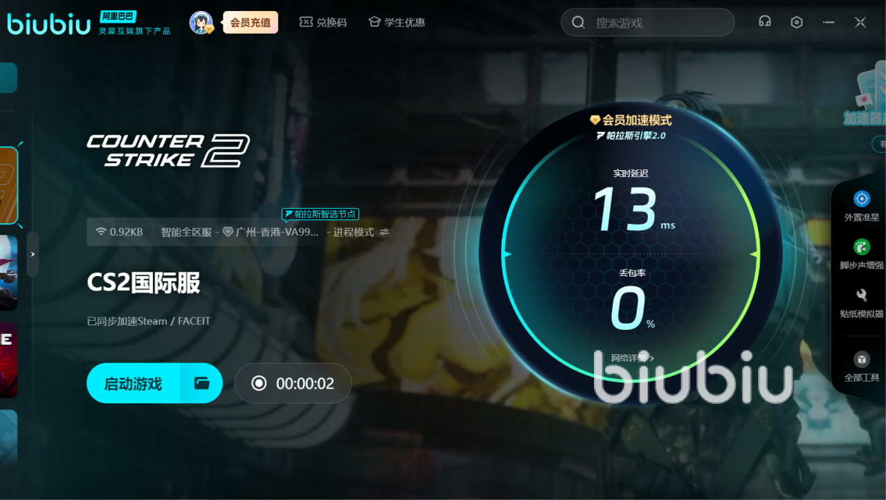 如果大家打算玩CS2国际服的话,就不能用本地网络了,所以建议用上biubiu,加速过后就能与全世界各地的反恐精英们交手。对于刚注册的新用户来说,可获得24小时的免费加速。另外新老用户输入兑换码【biubiu不卡顿】,就能额外领取三天免费加速。要是在拔除地雷时太卡,那就很容易被对方阻止。这时建议用上加速器,才可更快拆掉所有炸弹,避免被对手消灭。