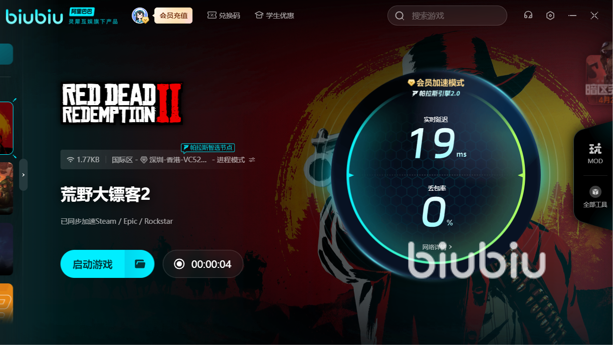 荒野大镖客2作为一款国际大作,目前仍然没有上线国服。所以必须借助biubiu,网络变好后,才能继续进入荒野世界中展开角逐,有机会认识更多的海外网友。对于刚注册的新用户来说,可立即获得24小时的免费加速。另外新老用户输入兑换码【biubiu不卡顿】,就能额外领取三天免费加速。如果大家在策马奔腾时太卡,那就很容易马底上摔下来。使用了加速器后,就可以轻而易举地一边骑马一边作战。