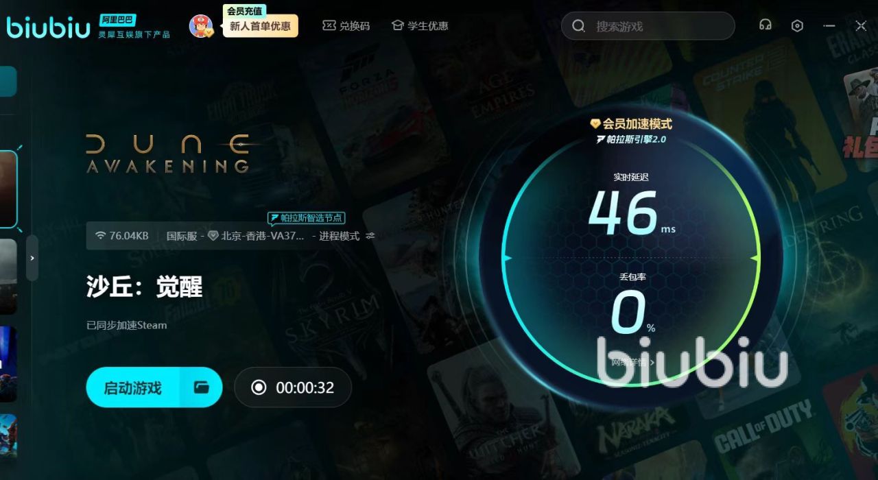 目前,沙丘觉醒的测试资格抽奖活动已在biubiu加速器客户端上线,玩家可以参与抽奖,赢取测试资格。此外,biubiu加速器不仅功能强大,还为玩家提供了丰厚的福利。新用户注册后将获得24小时的免费加速时间,此外,使用口令码【biubiu不掉线】即可兑换额外的72小时加速服务。这意味着玩家最多可以享受96小时的免费加速,足以覆盖整个测试期。
