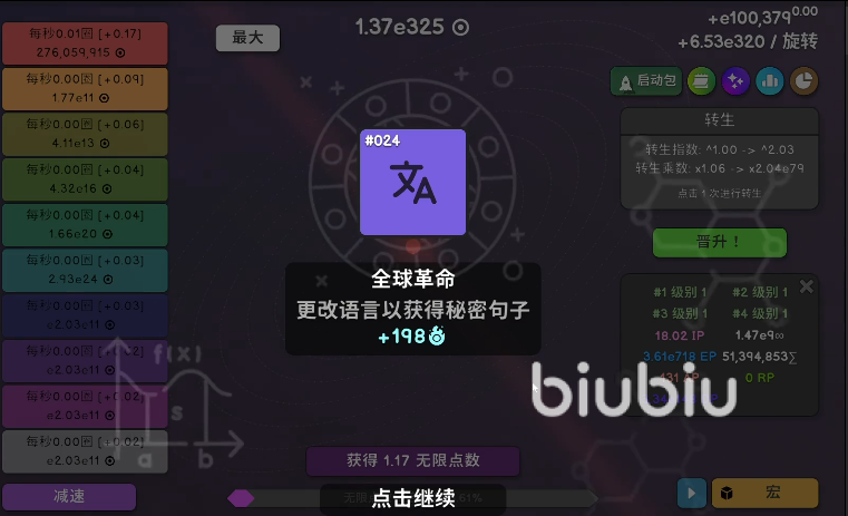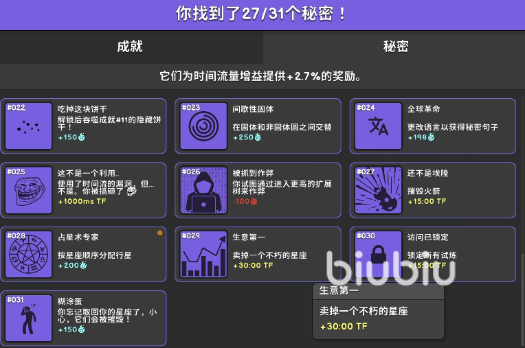 总之,《Revolution Idle》全秘密成就解锁指南(附详细解法)就是以上的内容了,完成所有成就后,时间通量增益最高可提升3.1%(每成就+0.1%)。建议优先解锁每日登录类成就(如6、16、17、18),再逐步攻克复杂操作类成就,最后别忘了用上biubiu助手防止网络不好不能及时同步数据解锁。