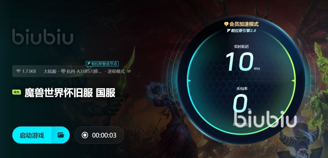 玩过魔兽游戏的玩家都知道这个游戏的玩法就是努力升级达到满级后,组队刷本刷装备,致力将角色职业的战斗力提升到最高数值,不过怀旧服的玩法有了一点小小的变化,在整个游戏过程中角色只有一条生命值,一旦操作失误或者是打怪升级时失败了就意味着游戏失败,因此在游戏过程中,特别是在战斗状态下的话,一定要确保自己的网络足够顺便,否则一个技能操作失误可能就结束了游戏,想要保持游戏的稳定,小编给玩家们介绍一个好用的加速器——biubiu加速器。