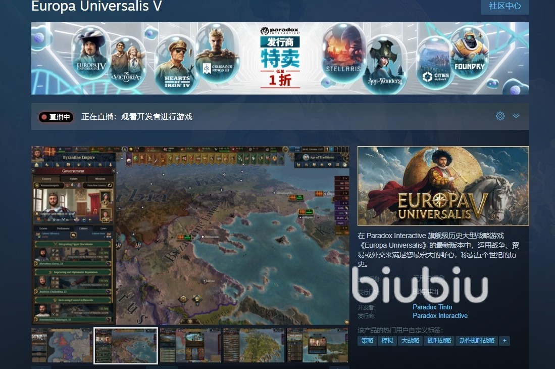 该游戏在steam平台的正式名称是Europa Universalis V,玩家可以搜索Europa Universalis来找到这一系列的作品。游戏本体和扩展包通常会定期打折,玩家可以在促销期间以更优惠的价格入手。