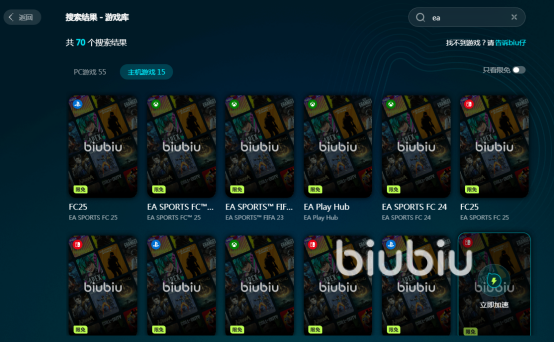 biubiu有着较强的兼容性,不同的游戏平台都能够轻松驾驭,比如pc、ps掌机设备以及ea、拳头这些游戏平台等等。只要在线搜索游戏名称,点击立即加速之后,游戏平台也会同步加速。这不仅只是专业的加速工具,更是超大游戏库,各种3a大作一手上线消息也会在这里全面推送,另外也能给玩家带来相当全面的游戏教程。
