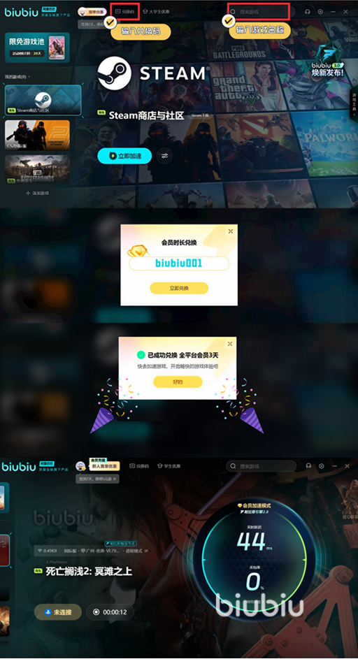 游戏支持多人异步联机,玩家建造的桥梁、充电桩等设施可全球共享。若想稳定体验联机内容,建议搭配加速器优化网络。小编建议你使用biubiu加速器,现在biubiu的体验活动非常多。现在新用户注册可领24小时免费加速,输入兑换码biubiu001再叠加72小时,总计96小时的免费加速时长,能有效缓解多人协作时的卡顿和延迟问题,尤其在高密度BT战和实时建造场景中提升流畅度。