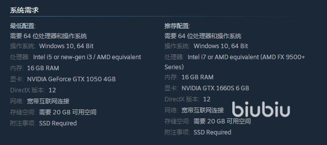在内存方面,建议玩家至少要16GB,因为内存的大小往往会影响到游戏在运行时的稳定性,显卡方面,建议玩家选择GTX 1050。虽然这款游戏对于配置的要求并不是特别的高,但是玩家在配置方面还是要引起注意,它往往会影响到玩家的体验感,另外在硬盘方面要有10GB+。