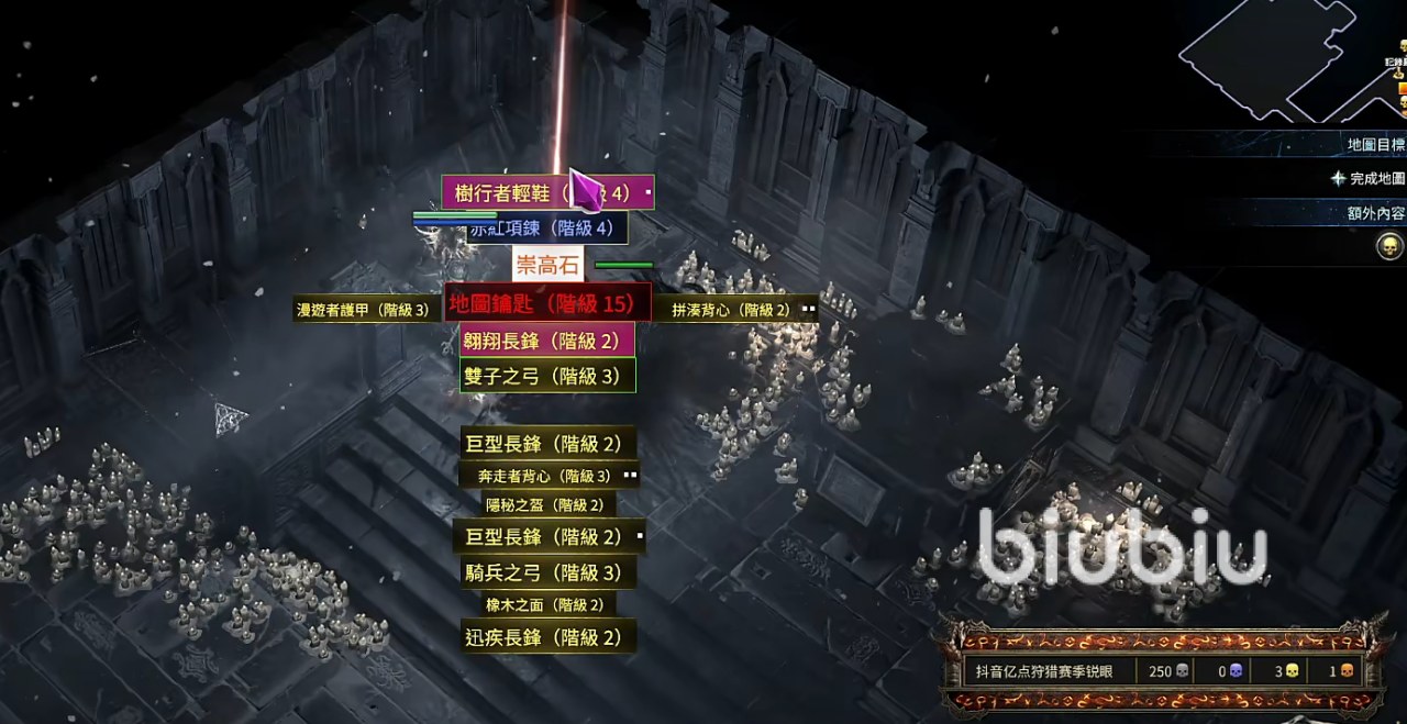 终局地图适配:所有阶级地图的裂隙均会掉落裂隙碎片,数量随地图阶级提升,T1地图最终稀有怪100%掉落通灵石。