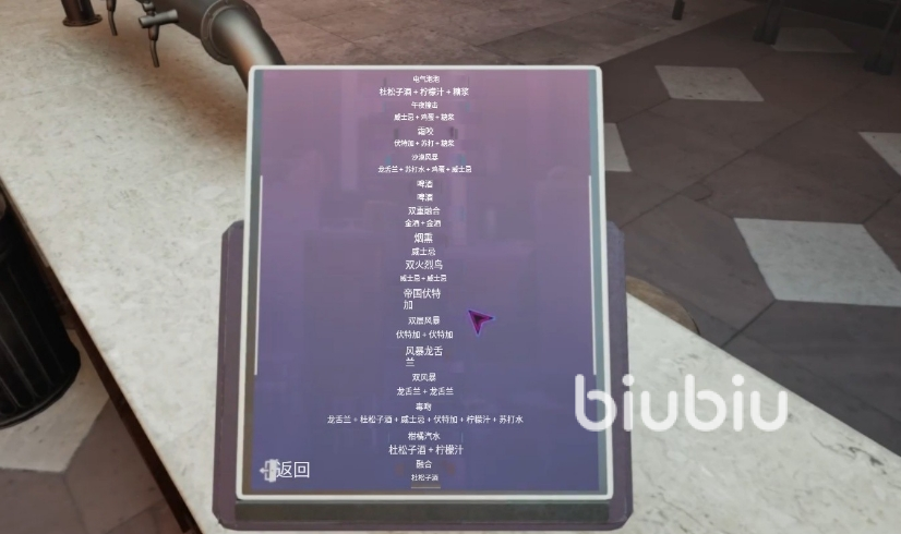 后面店铺不断解锁,我们的酒类商品也会增多的,配方在桌面都能够查到,根据要求订购然后倒入酒杯调制就可以完成了。大家在玩它的时候,要是选择多人合作,一定要用上biubiu,保证网络稳定不掉线。