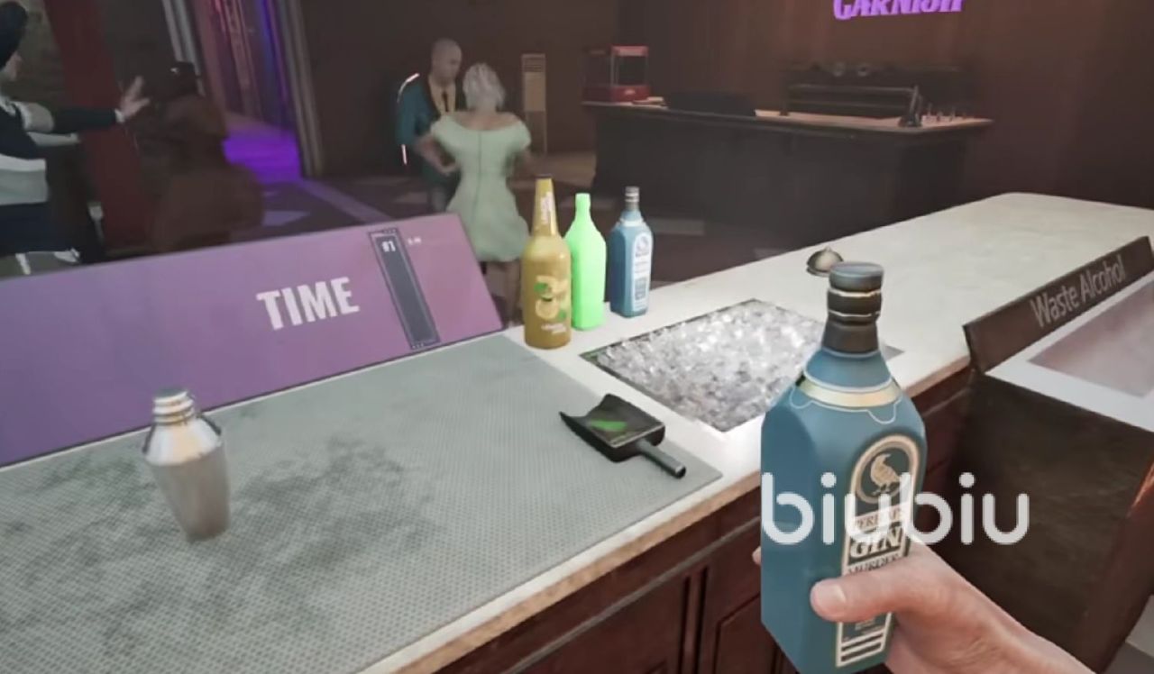 玩家在调酒时,鸡尾酒需要摇晃,或者说玩家使用鸡尾酒调酒时要不断的搅拌。如果玩家摇晃或者是搅拌的时间较长,有溢出,这样就是白白浪费,所以玩家在操作的时候要精准的控制。