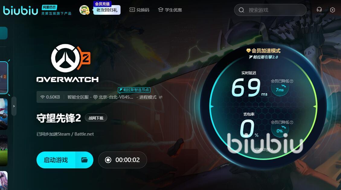 对于守望先锋2延迟问题,biubiu提供了针对性优化方案,用户打开软件就能搜索到对应的加速服务,届时点击立即加速即可享受流畅的游戏。为了便于大家试用,平台还安排了很多对应的福利,新用户注册即可免费领取24小时全平台加速时长,覆盖从守望先锋2到CS2的主流射击游戏;无论是新老会员,输入兑换码【biubiu不卡顿】还能解锁3天加速时长,之后就能体验专属节点及其他实用功能了。