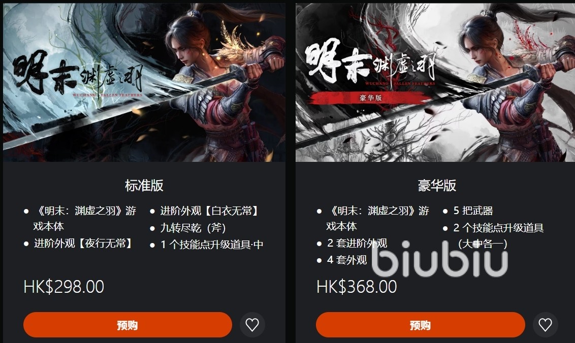 目前明末渊虚之羽已经定档,标准版的价格是298港币,豪华版为368港币。折合算下来,大概275元和340元左右。