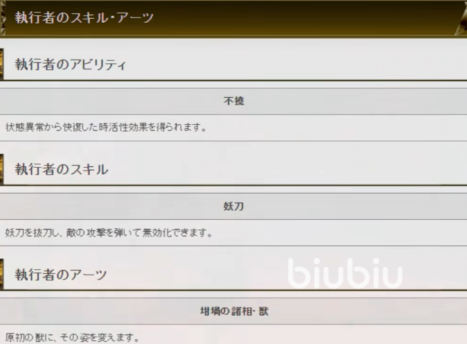他的技能是妖刀,在角色拔出妖刀的时候,可以将敌人的攻击弹开并且使其无效化。这个虽然是好用,但是对于架刀的实机要把控好,尤其是每个怪物的出手速度是不一样的,只有卡准了才可以产生无效化的作用。同时通过看宣传片以及各种试玩视频能够发现,弹刀是会产生削韧。