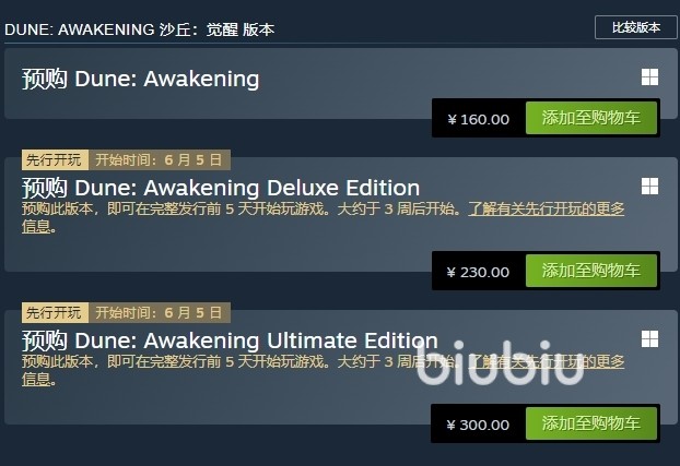 如果小伙伴们想要提前玩儿也是可以的,除了预购普通版本之外,大家还可以预购更加高级的版本,就是价格会高一些,像普通版本只需要花费160元,而高一点的版本需要花费230元,更高级一点需要300元,后面两个版本都是可以提前5天玩游戏的,距今大概需要等待三周时间,如果大家不想提前玩儿的话,选择第一个版本和后面版本的游戏体验内容并没有什么区别,只是后两个版本大家可以得到的东西一个比一个多。