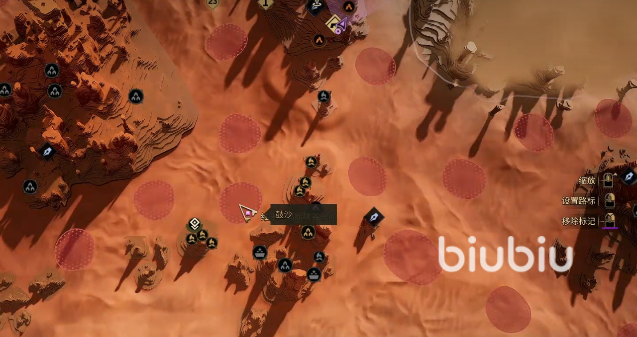 危险区域标记:第二张地图(如沙漠腹地)地面会出现红色光圈“鼓沙”,进入后沙虫会立即触发。