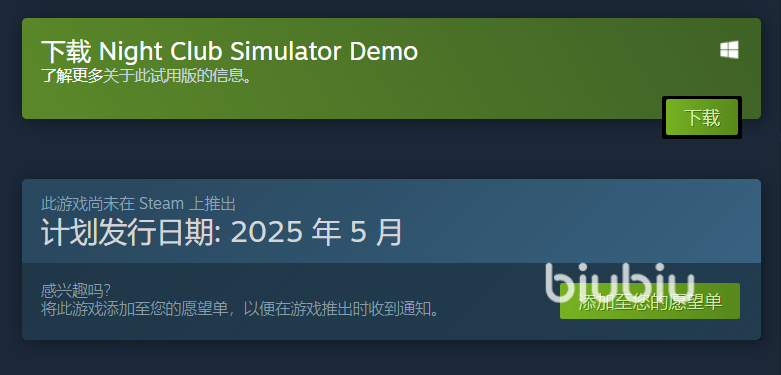 我们现在去steam就可以查找到商店页面了,可以看到官方给出来的发行日期是在2025年5月,但是具体哪一天没有公布。另外在页面上还开放了试玩版本的下载,各位可以点击获得,玩一下也不错的。