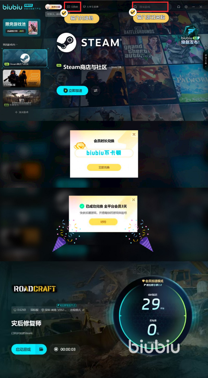 由于游戏内容庞大、画面细节丰富,在下载、更新与联机同步过程中,对网络环境的稳定性有极高要求。为了避免出现下载缓慢、掉线或加载失败等问题,建议玩家使用专为游戏场景优化的biubiu加速器。该加速器采用智能线路选择技术,可以根据玩家所处地区自动匹配最快的连接节点,大幅提升游戏下载与运行效率。更值得一提的是,biubiu当前推出了限时福利活动:新用户注册即送24小时免费加速时长,输入专属口令【biubiu不卡顿】还能再领取72小时,共计96小时免费使用时间。这对于期待首发体验的玩家来说,是一项极为实用的福利。无论是首次安装,还是后续更新补丁、进入多人合作模式,biubiu都能为你提供稳定流畅的网络支持,让你全身心投入到灾后重建的挑战中。