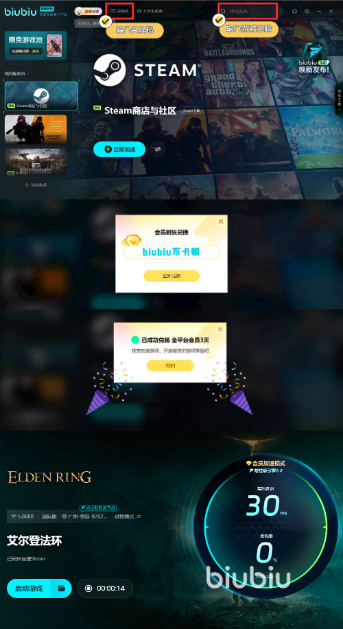 尽管如此,哪怕新手阶段被Boss虐得焦头烂额,很多玩家依旧欲罢不能,这种“越虐越上头”的体验也正是艾尔登法环的独特魅力。如果你是PC玩家,还可能会遇到网络不稳、掉线或延迟等情况,特别是在联机摇人或PVP时尤为明显,这时候推荐使用biubiu加速器。biubiu为玩家提供包括艾尔登法环在内的多款热门游戏加速服务,新用户首次使用还能获得免费24小时加速福利,无需绑定支付信息即可开启加速,有效缓解连接不畅、匹配失败等问题。对那些希望挑战“摇人战术”的玩家来说,biubiu的低延迟环境是你称霸交界地不可或缺的助力之一。另外,输入兑换码【biubiu不卡顿】还可以再获得72小时加速会员。