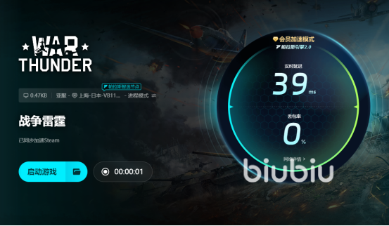 由于此游戏的服务器并没有在国内,因此加速器的选择尤为重要,biubiu在全球200多个地区都覆盖加速节点,全区服可享受一键加速,畅享毫秒级低延迟。如果利用本地网络连接游戏,延迟数据大概在200ms,利用此加速应用的专项通道加速之后延迟数据控制在40ms以下综合提升98%,丢包率为0%。