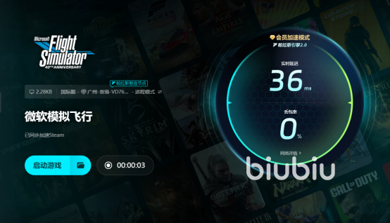 微软模拟飞行闪退具体的相关内容介绍到这里就结束了,biubiu加速器是当前比较热门的游戏伴侣,使用方法较为简单,只要在线搜索游戏名称即可立即加速一键入库,让你自由在空中翱翔。