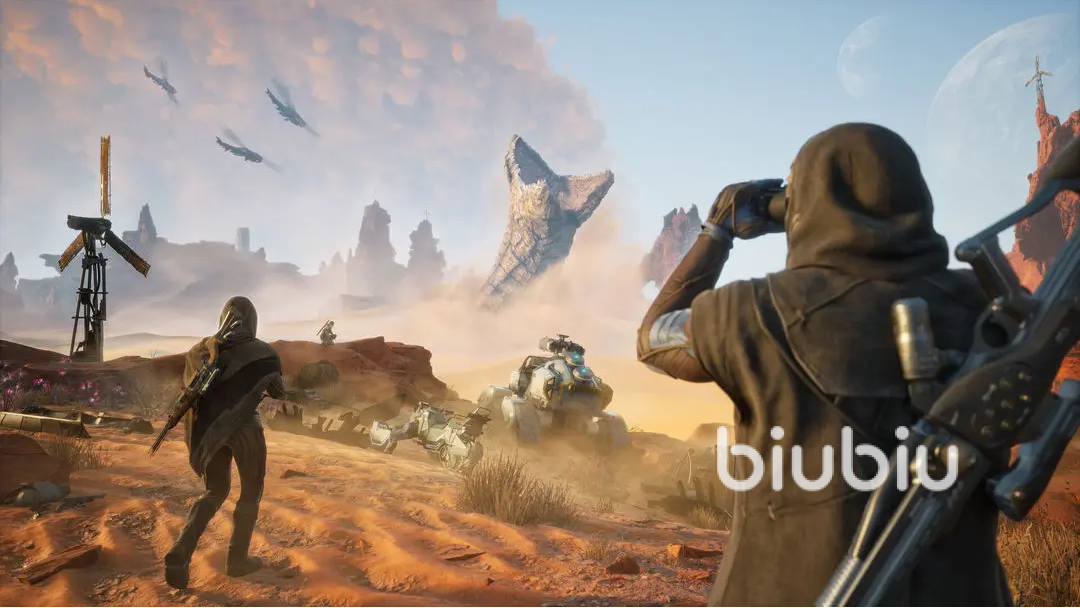 游戏中精致细腻的世界,如无垠沙漠的氛围几乎令人分不清现实与虚幻,从拾荒求生到主宰星球,体验在星际政治与生态危机中书写生存史诗的旅程。
