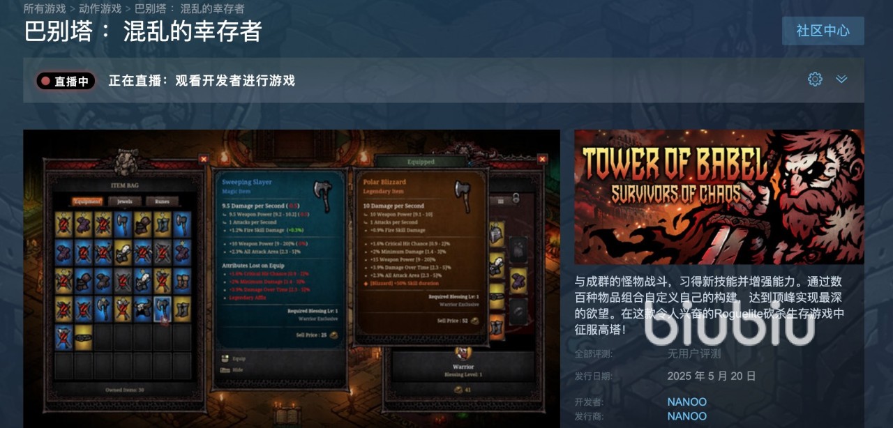 2025年05月19日 17:12 来源:亡灵离绿毛虫这是一款充满暗黑幻想风格的游戏,融合了吸血鬼幸存者的生存机制和暗黑破坏神的装备系统。玩家需要在充满怪物的巴别塔中战斗,习得新技能并增强自己的能力。这篇文章来了解巴别塔混乱的幸存者steam叫什么?这里有数百种物品可以组合,打造出独一无二的强大装备,还有各种稀有独特的随机选项物品等你收集。