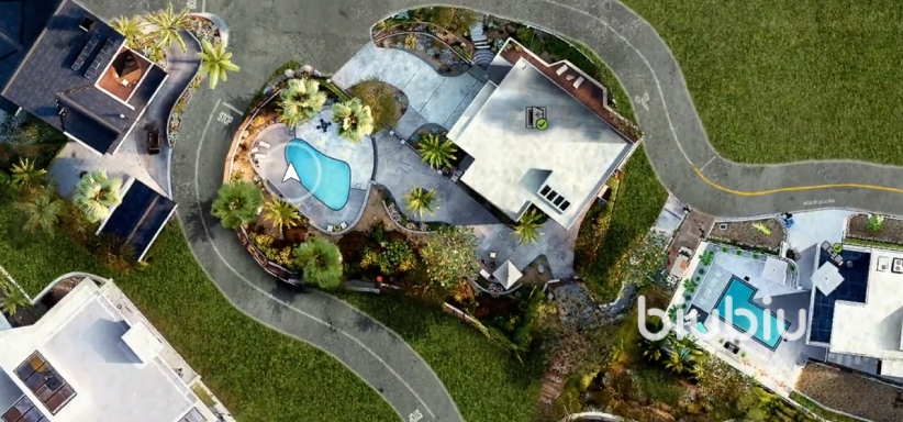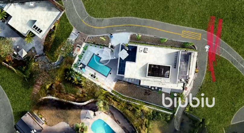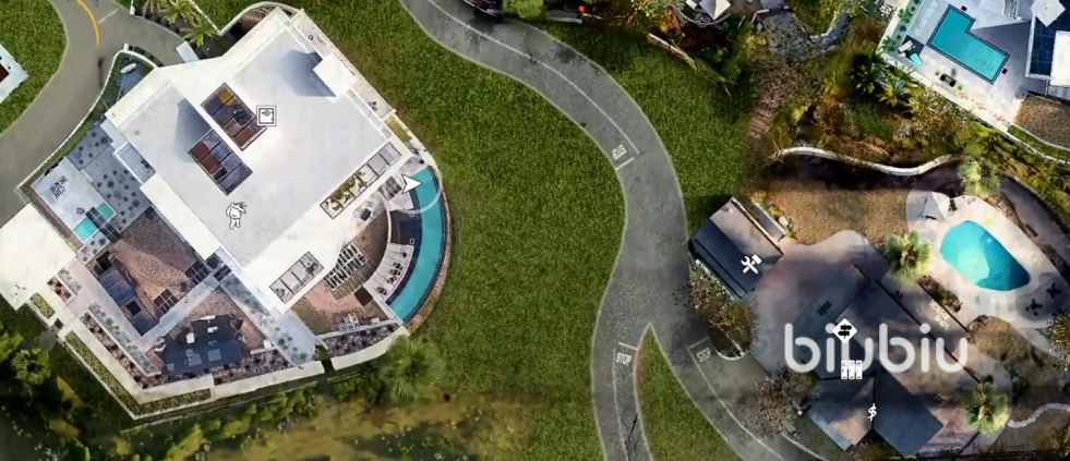然后继续前往下一个别墅,可以看到这个泳池是扇形的,能找到道具的地方小编也已经展示给各位了。在泳池边是有燃烧着的火焰的,拿起可以发现是奥比的手机。
