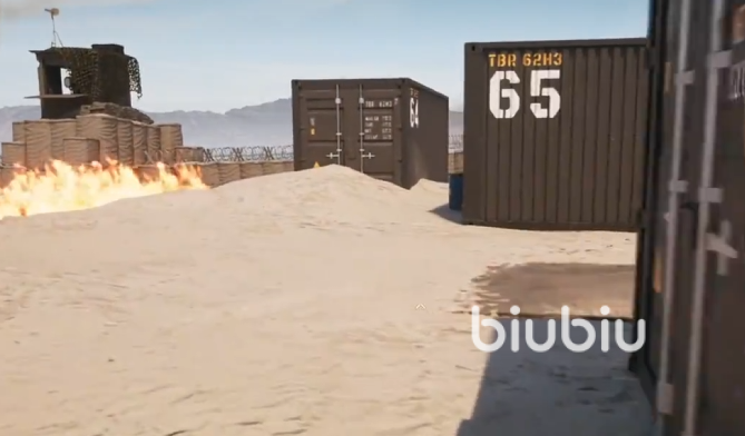 根据提示知道是有一批秘密的军队物资的,如果我们能够得到,就可以带来不少的优势。按照提示的线索,我们来到下图所示的位置,可以发现是一个集装箱聚集的地方。在围栏跟箱子的拐角处,可以发现有一个黄色的发电机,需要启动一下。