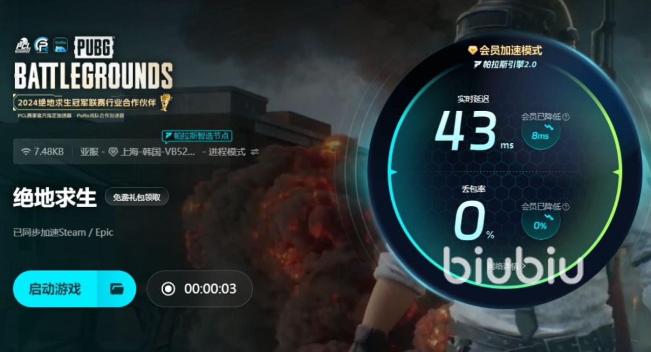 综上所述,《PUBG》频繁闪退大多数情况下并非硬件导致,而是受限于不稳定的网络环境。想要从根本上解决这一问题,不妨试试biubiu加速器。、选择一个好加速器,意味着离“吃鸡”更进一步。现在就体验biubiu带来的顺畅网络环境,让你的《绝地求生》不再卡顿,不再闪退,战斗到底。
