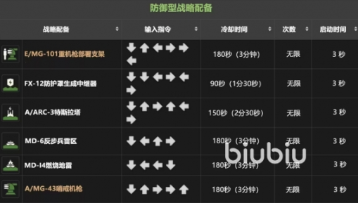 防御型的战令也不能缺少,FX-12防护罩生成中继器可以帮助我们抵挡伤害,使用↓↓←→←→来召唤得到,然后用↓←↑→就可以召唤出来MD-6反步兵雷区使用。不同的战备指令作用不同,我们需要搭配好之后进行使用,才可以发挥出来最大的作用的,各位可以好好思考一下。