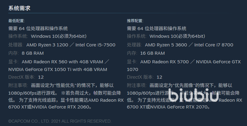 需要注意的是,目前该游戏还未正式上线,上述配置要求可能会发生变化。如果打算购买或升级电脑玩生化危机9,建议在购买前查阅最新的官方配置要求,以确保电脑能够满足游戏的需求。