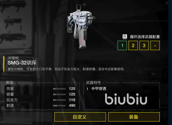 该武器的定位是一把冲锋枪,全称叫做SMG-32训斥。重型冲锋枪的特点是可以发射大口径子弹,具有中甲穿透能力,但与之相伴的是后坐力比较大,并且射速比较慢,适配于中近程的战斗中使用。