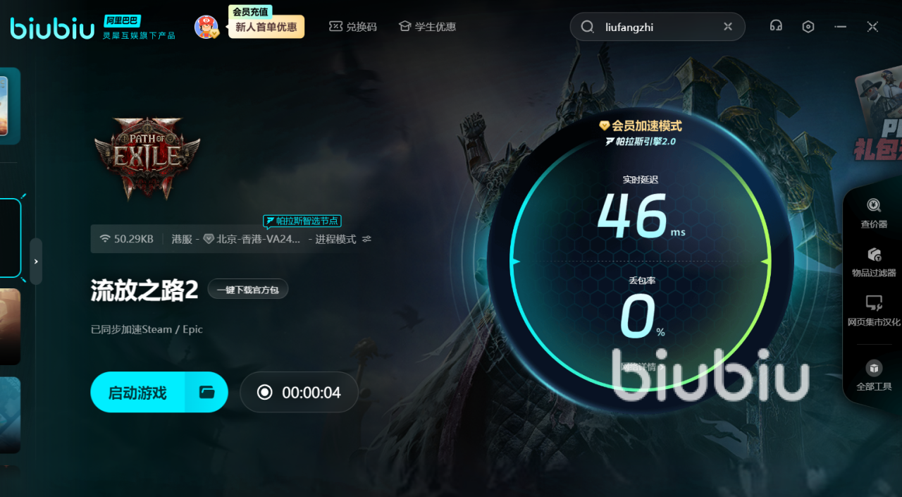 当然了,针对《流放之路2》全球联机特性,建议大家使用Biubiu加速器,它特有的动态多线技术,可以智能切换最优节点,降低延迟至50ms以下,尤其适配Wi-Fi波动或校园网环境。还有多端兼容,支持PC、主机加速,再加上提供的免费福利加速,性价比高于同类产品。
