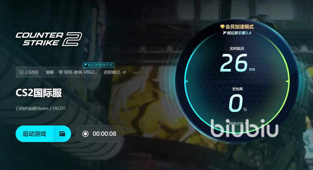 与此同时,CS2在每次版本更新后引擎加载机制也会发生变化,一些用户在更新后频繁出现闪退,甚至连菜单界面都加载不了就被强制退出。这种情况常常与网络DNS解析失败有关,也有可能是Steam平台与游戏服务器握手失败。biubiu加速器通过优化DNS通道,并增强Steam及CS2服务器直连能力,让你不仅能更快进入游戏,还能避免连接异常导致的闪退。尤其是在关键对局即将开始的时候,biubiu的稳定加速能够让你从容应战,不再因为连接中断而输掉整局比赛。