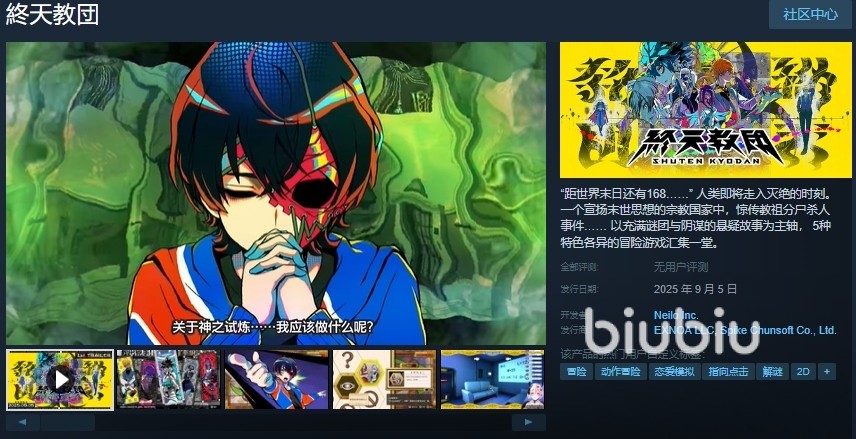 在steam平台上,终天教团的正式名称为終天教団,其英文名称为SHUTEN KYODAN。目前,游戏已在steam上开放预约,并计划于2025年9月5日正式发售。玩家可以通过预约特典获得独特的小说,而购买数字豪华版的玩家则可以获得游戏本体、迷你原声光碟和视觉艺术书等额外内容。