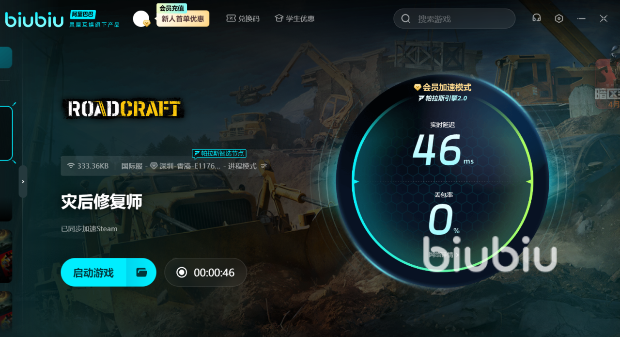 动态地形变化(如道路铺设、废墟清理)需实时同步数据,如果再加上动态天气系统的加载,就更加容易卡顿掉帧了,而掉线很可能导致任务失败,尤其是起重机吊装、车队运输等需精准配合的操作。高延迟也会导致画面不同步或操作失效。这种情况建议用上biubiu加速器,它智能匹配最优节点(如欧美、日韩专线),将联机延迟压至50ms以下,确保起重机吊装、车队运输等操作实时同步。
