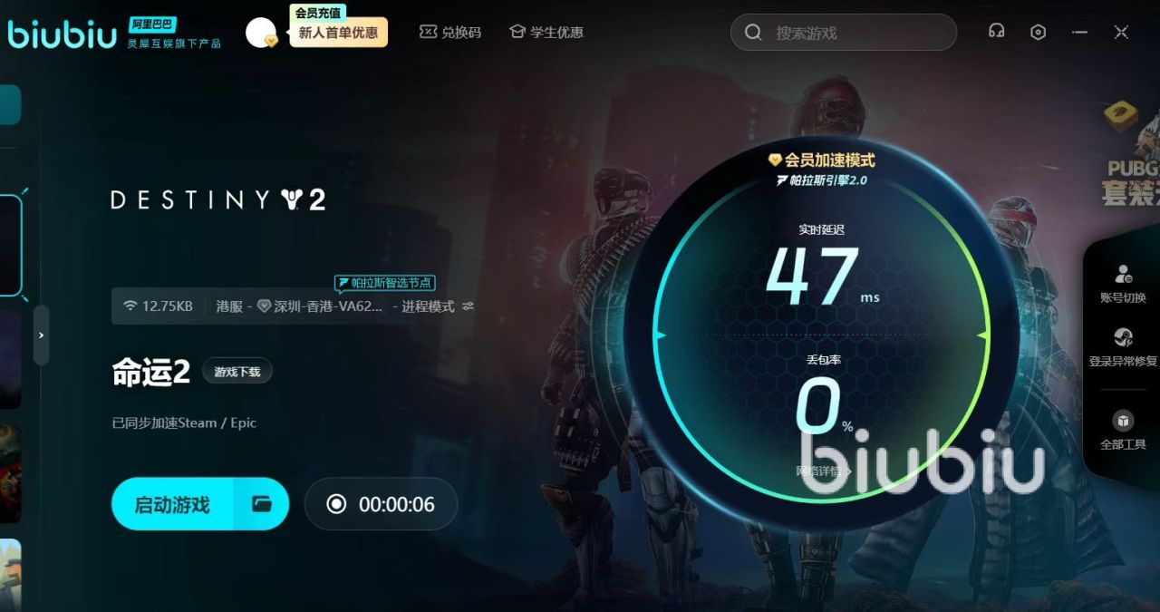 在众多加速器中,biubiu加速器靠技术实力和友好的用户设计而脱颖而出,配备了高速独立加速专线,无论是steam商店,还是各类3A大作或小众精品游戏,都能实现高效加速,确保玩家在命运2中享受到流畅的联机体验。此外,资源库极为丰富,几乎涵盖了市面上所有热门游戏,满足了玩家多样化的需求。