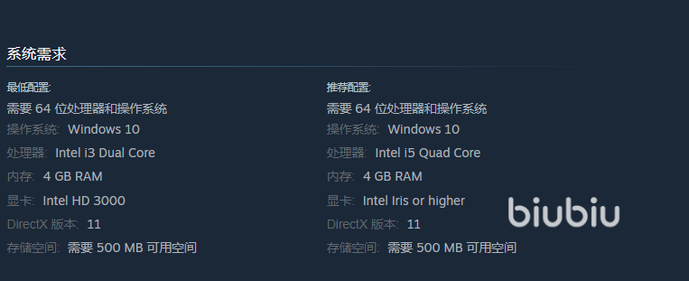 要是想运行的更加稳定点,一定是要有4gb的运行内存。现在单机大作盛行,喜欢玩的小伙伴早早就把自己的设备给升级到高配了,满足这个新游的配置需求还是很容易的。
