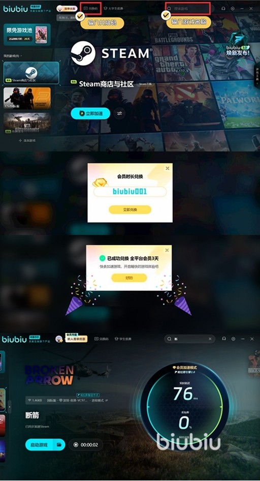 所以说在游戏的设定条件先,必须要求我们要有一个非常稳定的网络环境才能很好的进行游戏,常规条件下断箭亚服与欧服物理距离导致的200ms以上延迟,基本很难正常游戏。那么这时候大家可以试试biubiu加速器,让你能够畅玩断箭,无需要率网络负担。而且刚加入biubiu的新玩家可注册赠送24小时的免费加速时间,而且再输入【biubiu001】还能额外叠加再领72小时。这样最多96小时的免费加速时间我们就直接到手,此福利能完整覆盖断箭的新手教学、首周排位赛等关键成长期,让你感受游戏的真正魅力。