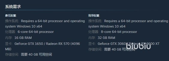 最低操作系统要求为64位Windows 10,处理英特尔 Core i5-3470,内存8 GB。显卡方面建议GeForce GTX 660,此外,硬盘需要至少有20 GB的可用空间,以确保游戏能够顺利安装。