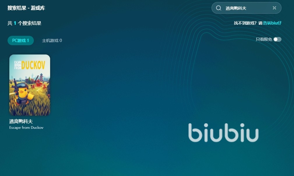 2025年05月28日 16:33 来源:传送信拉达逃离鸭科夫下载慢怎么办?这是一款非常有趣的游戏,游戏人物是一只只可爱的小鸭子,玩法是以设计为主的,而且视角独特,以俯视的形式,所以吸引了不少小伙伴,不过大家都知道端游游戏下起来速度是比较慢的,所以小伙伴们想知道有没有什么比较好的解决办法?今天给大家带来了一款可以提升大家下载速度的加速器——biubiu。