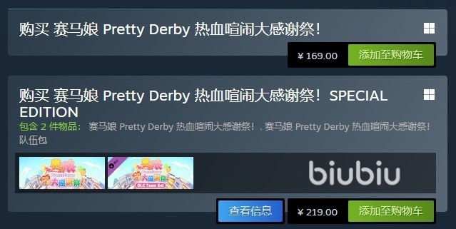 在Steam平台上赛马娘的售价为169元,这是游戏本体的价格。如果你想要购买包含游戏本篇和队伍包的高级版本,售价则为219元。这个价格对于一款内容丰富、玩法多样的游戏来说,是非常具有性价比的,特别是对于那些喜欢养成类游戏和赛马文化的玩家。
