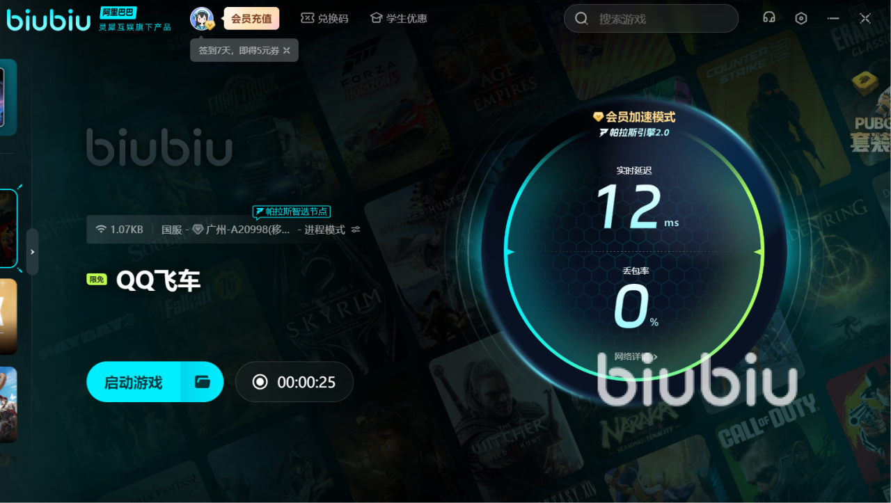 在玩QQ飞车时太卡的话,那就不能进行多段漂移,从而不能积攒更多的氮气。这时建议用上biubiu,即可更快完成多段漂移,毕竟网络变好了,操作起来也更顺畅。对于刚注册的新用户来说,可领取24小时的免费加速;另外新老用户通过兑换码【biubiu不卡顿】,就能额外获得三天免费加速。要是加入了新的赛车或者城市地图,那就要再次更新才能继续起航。这里建议用上加速器,即可快速下载或者渲染出全新的赛车模型,令你随心驾驭。