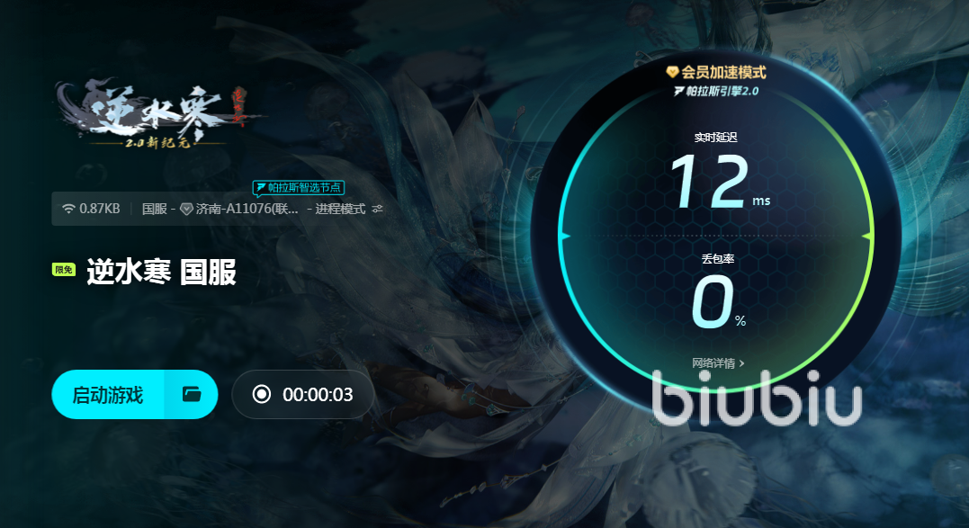 还有一个很重要的消息,那就是biubiu会限时推出一些免费加速的选项,目前逆水寒的国服,就在免费加速范围之内。不过限时免费也是有着时间段限制,大家要及时关注更新情况。在技术方面,biubiu之所以可以给大家带来如此强悍的加速效果,和自身所采用的诸多科技是分不开的。例如在连接的时候,就是使用的专线进行连接,该专线覆盖范围广泛,让数据可以在客户端到服务器之间流畅进行传输。这样就可以避免因为距离远,而出现数据丢失等现象。此外biubiu还开放了诸多节点,可以根据需要去自由进行连接,一旦出现节点堵塞的情况,会自动切换为另外更合适的选择,所以不会受到网络波动的影响,能够长时间保持稳定。