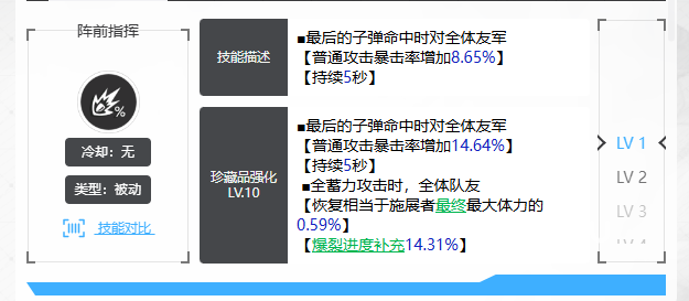 技能2(增伤)> 爆裂技(吸血)> 技能1(暴击)。在资源投入中,建议开荒期 1/4/1,后期再补 4/7/4。